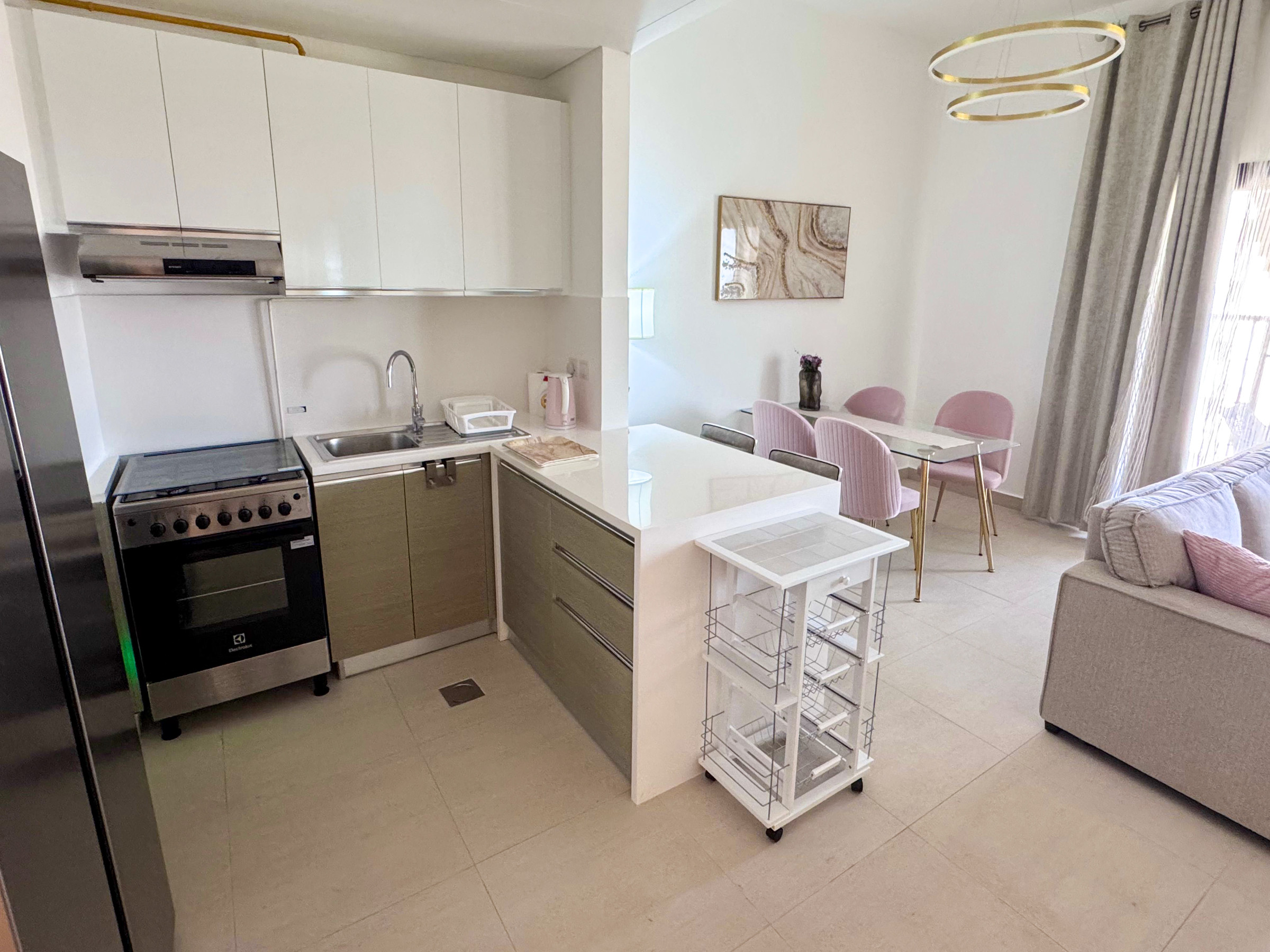 Step into a welcoming living space that exudes warmth and elegance, complete with tasteful furniture, soft lighting, and stylish decor. The open-plan kitchen is fully equipped with modern appliances and flows naturally into the lounge and dining area—ideal for relaxed everyday living or entertaining guests.